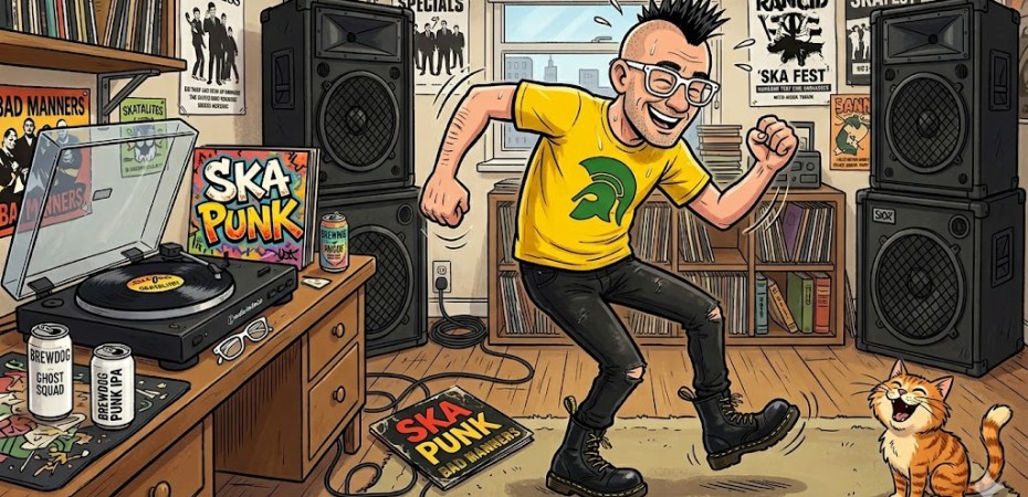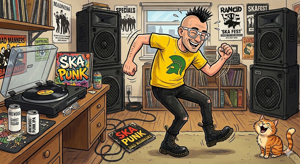 In the past, for this, some vintage Rock ‘n’ Roll or 1980s Rockabilly would be my ‘go to’ music for a bop. I still do, but more often now, I’ll reach for some loud ska punk or skinhead reggae and have a good ol’ skank around the room.